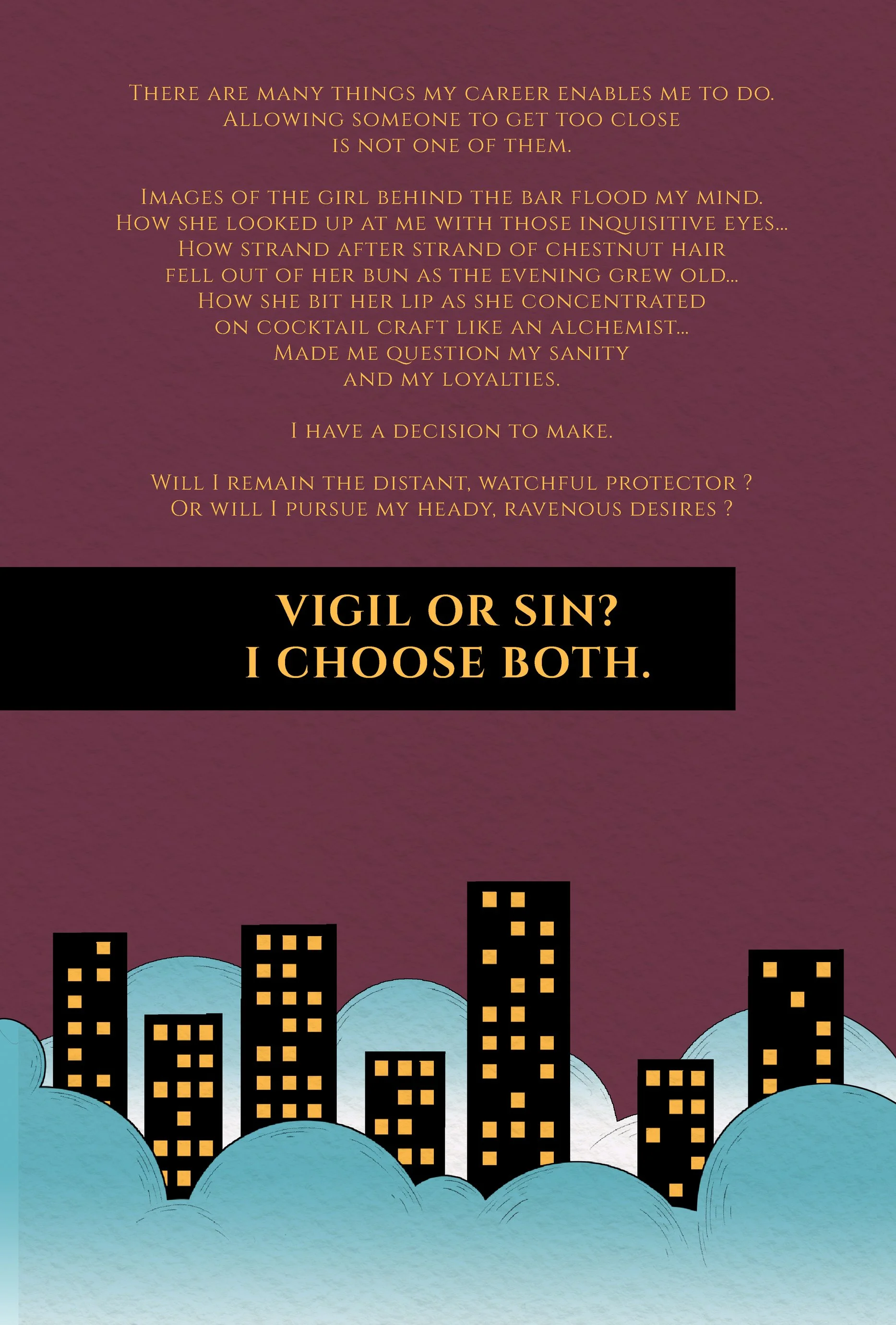 Suffused with suspense and sexual tension, Vigil and Sin is a must-read for lovers of love, slow burns, immoral themes, and gripping story lines that make you want to be the characters. . . however dangerous that might be.